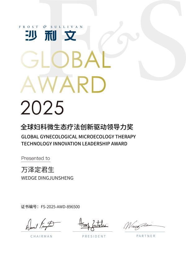Frost & Sullivan Awards Wedge's Pharmaceutical The“Global Intestinal Product Leadership Award” And“Global Gynecological Microecology Therapy Technology Innovation Leadership Award”