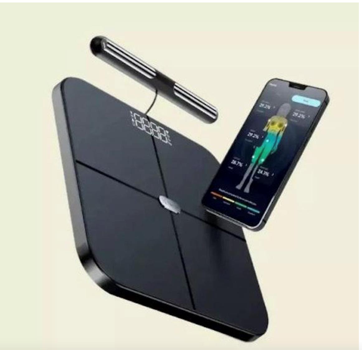 It tracks over 45 key metrics including body fat percentage, skeletal muscle mass, visceral fat, hydration levels, bone density, basal metabolic rate, and segmental composition for precise regional analysis. The accompanying app consolidates data and provides trend monitoring and AI-driven insights.