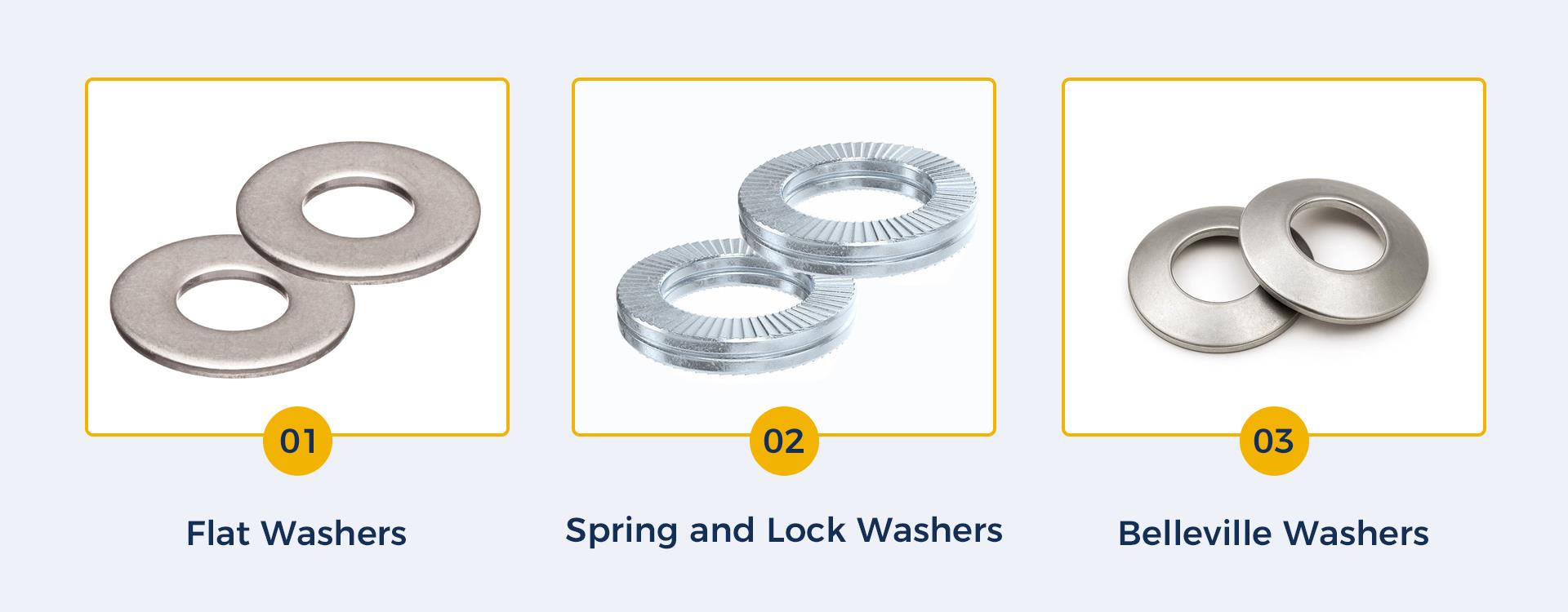 Look at the main danger: Vibration? (Choose spring or lock washers) Rust? (Choose washers made of stainless steel) Is there a leak? Flat Washers: Pick rubber washers or very high pressure? (Consider bossed washers)