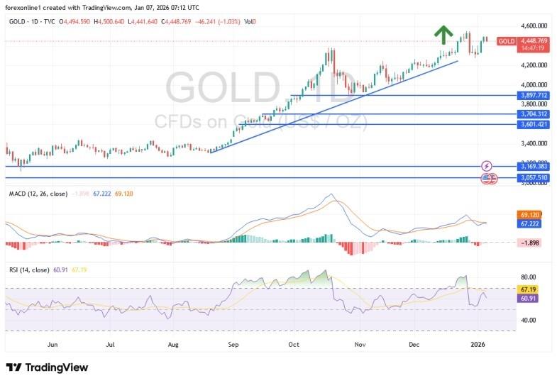 - The overall Gold Trend: Strongly bullish. Today's Gold Support Points: $4445 – $4380 – $4290 per ounce. Today's Gold Resistance Points: $4530 – $4570 – $4620 per ounce.