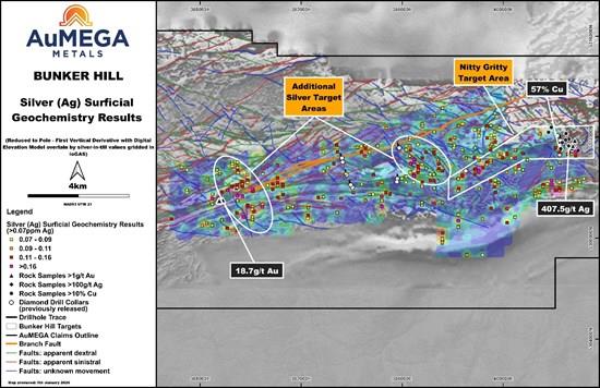 Aumega Metals Identifies Several Gold And Base Metals Targets At Bunker Hill
