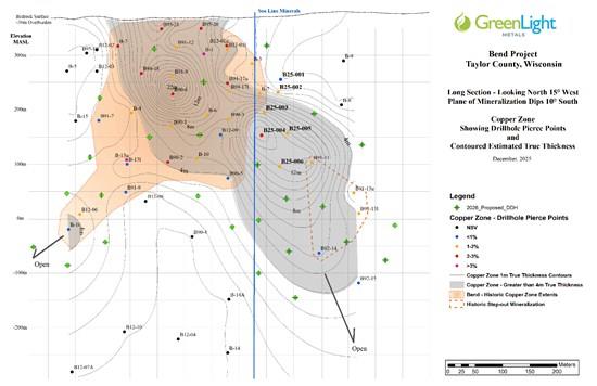 The success of the Phase 1 program has positioned GreenLight well for the next stage of exploration on the Bend Project. Planning is underway for an expanded drill program at Bend. The Company has submitted a Notice of Intent (NOI) to the Wisconsin Department of Natural Resources for the Soo Mineral Lease that, if approved, would permit up to approximately 7,000 metres of drilling on that parcel. Subject to approvals, the Company expects to mobilize two drill rigs and commence an initial winter program, with follow-up metreage guided by results. Upon approval of the Prospecting Permit on U.S. Forest Service lands, drilling would focus on resource-definition drilling within areas of known mineralization to support a future maiden mineral resource estimate, as well as western down-dip extensions of the mineralized horizons.