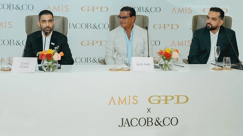 The signing ceremony, held at the AMIS Sales Centre on Sheikh Zayed Road, was attended by Jacob Arabo, founder, chairman, and creative director of Jacob & Co.; Neeraj Mishra, founder and CEO of AMIS GPD Development; and Shah Azim Hameed, shareholder of AMIS GPD Development.