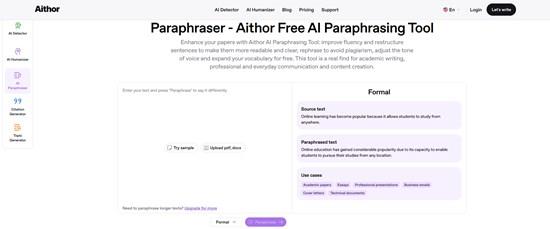According to Aithor, the paraphrasing feature is built to assist with a wide range of writing tasks, including academic papers, professional documents, and digital content creation, while reducing the time typically required for manual rewriting.