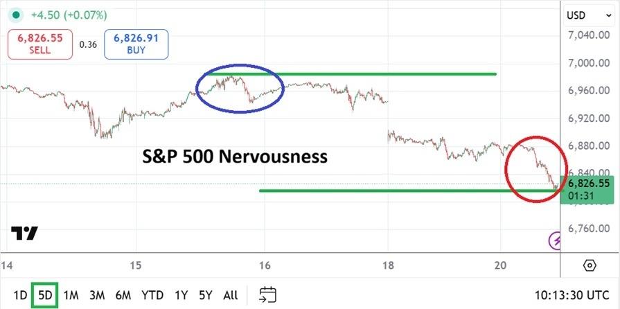 (MENAFN- Daily Forex) The S&P 500 via futures trading on CFD platforms is around the 6,830.00 ratio at the time of this writing. Today's trading is likely to be rather disruptive as U.S financial institutions return from their long holiday weekend.Day traders considering pursuit of the S&P 500 today should be conservative. Friday's close on the S&P 500 was around the 6,947.00 mark. Yesterday's trading via future markets however, started with a large gap lower, this as the cash S&P 500 market remained closed for the U.S Martin Luther King Jr. holiday. The S&P 500 traversed close to the 6,885.00 ratio quite a bit yesterday. The gap lower as the cash market remained closed yesterday was a definite sign of nervousness.Today's opening via the futures market once again has displayed weaker sentiment. The S&P 500 via CFD platforms produced another dramatic drop early this morning, currently the index is around the 6,830.00 level. The cash market for the S&P 500 will open in a handful of hours and speculators with limited funds may want to stand to the side and allow large players to demonstrate how they feel about current market conditions.S&P 500 Consistency to be TestedSince attaining apex highs on Thursday of last week, which flirted with the 7,000.00 realm briefly, the S&P 500 has struggled. However, the incremental selling on Friday was rather polite and the index remained well within the healthier upper tier of its value. However, the constant chatter over the past few days from the White House regarding Greenland and other potentially combustible issues seem to have sparked a stronger nervous reaction over the weekend, yesterday and early this morning.Behavioral sentiment is showing signs of fatigue. The S&P 500 and institutional investors seem to be in need of optimism and where that is going to come from appears difficult to guess for the short-term. President Trump is scheduled to speak in Europe tomorrow while attending the Davos summit in Switzerland. President Trump is famous for his ability to speak in a rather straight forward manner peppered with surprises. Large traders are likely to react to Trump's speech tomorrow. The consistency of the S&P 500 has faced headwinds via futures markets yesterday and early this morning, via selloffs, the cash S&P 500 market is certain to get the attention of everyone when it opens today Levels Must be Watched NowHaving tested all-time highs only a handful of days ago, the S&P 500 today must be watched because of its potential to test support levels. The S&P 500 may be viewed as oversold by large investors, but the selloff in the futures markets the past day and a half are not positive signals.Choppiness and spikes should be anticipated today in the S&P 500 as market equilibrium is sought.
