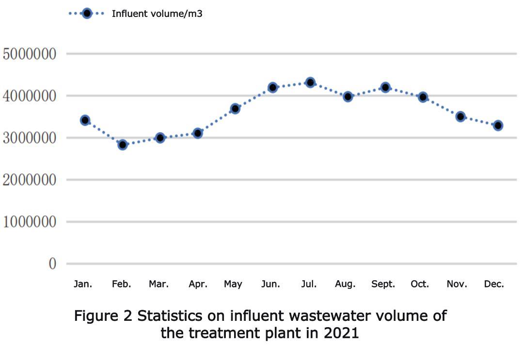 Part of the plant's influent comes from older residential areas with combined sewer systems (mixing stormwater and sewage). During the flood season, domestic wastewater discharge increases substantially. Conducting retrofit work during this period, which involved reducing some treatment capacity, could affect the stable operation of existing facilities, making it difficult to handle peak discharge loads and increasing operational risks. Statistical analysis of the plant's wastewater treatment volume data from the previous year (see Figure 2) indicated that the non-flood seasons, specifically November-December and February-April when treatment volumes are lower, were suitable for the retrofit. This timing helped ensure continuous and effective treatment of domestic wastewater while creating a relatively stable and controllable construction environment, guaranteeing project progress.