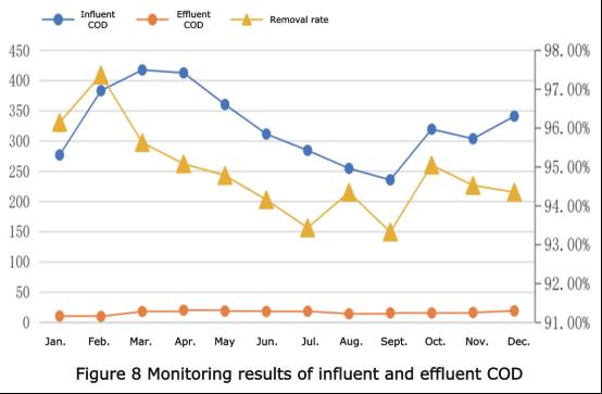 After completing the biological reaction tank aeration system retrofit, the COD and ammonia nitrogen (NH3-N) content in the tank wastewater were monitored continuously for 12 months to evaluate the retrofit's effectiveness.