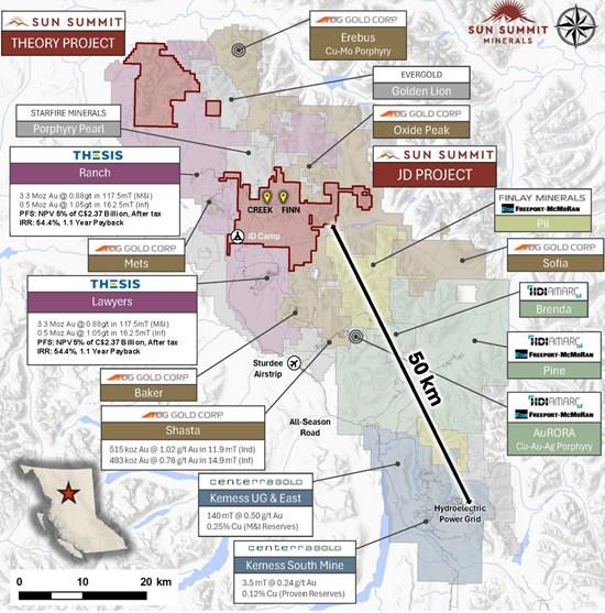 Sun Summit Minerals (TSXV: SMN) (OTCQB: SMREF) is a mineral exploration company focused on the discovery, expansion and advancement of district scale gold and copper assets in British Columbia. The Company's diverse portfolio includes the JD and Theory projects in the Toodoggone region of north-central B.C., and the Buck Project in central B.C.