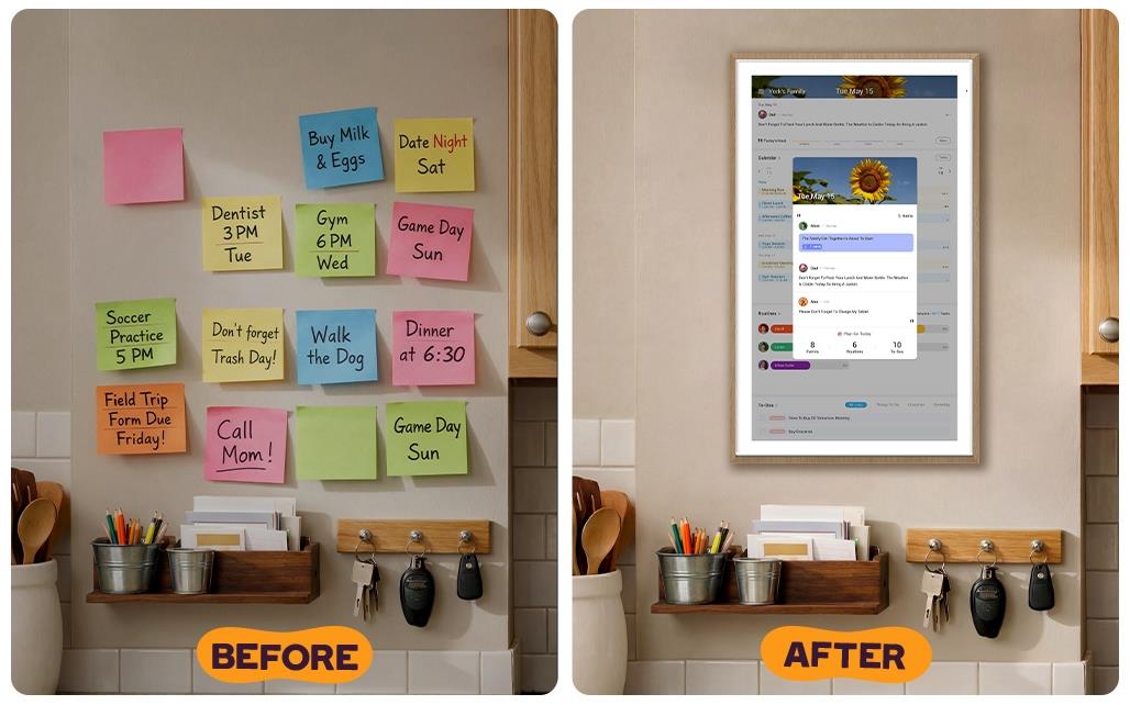 The feature also supports visual countdowns, allowing families to track upcoming birthdays, holidays, family gatherings, or school deadlines. By displaying time visually, Message Board helps create a shared sense of anticipation and awareness around important moments. In addition, customizable color backgrounds allow different types of messages to be distinguished at a glance, making it easier to prioritize information in busy households.