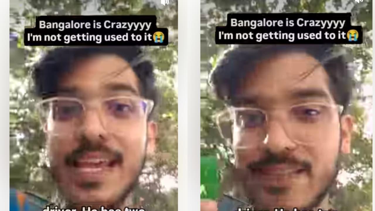 The text overlay on the video read:“Bengaluru is crazy. I am not getting used to it.”