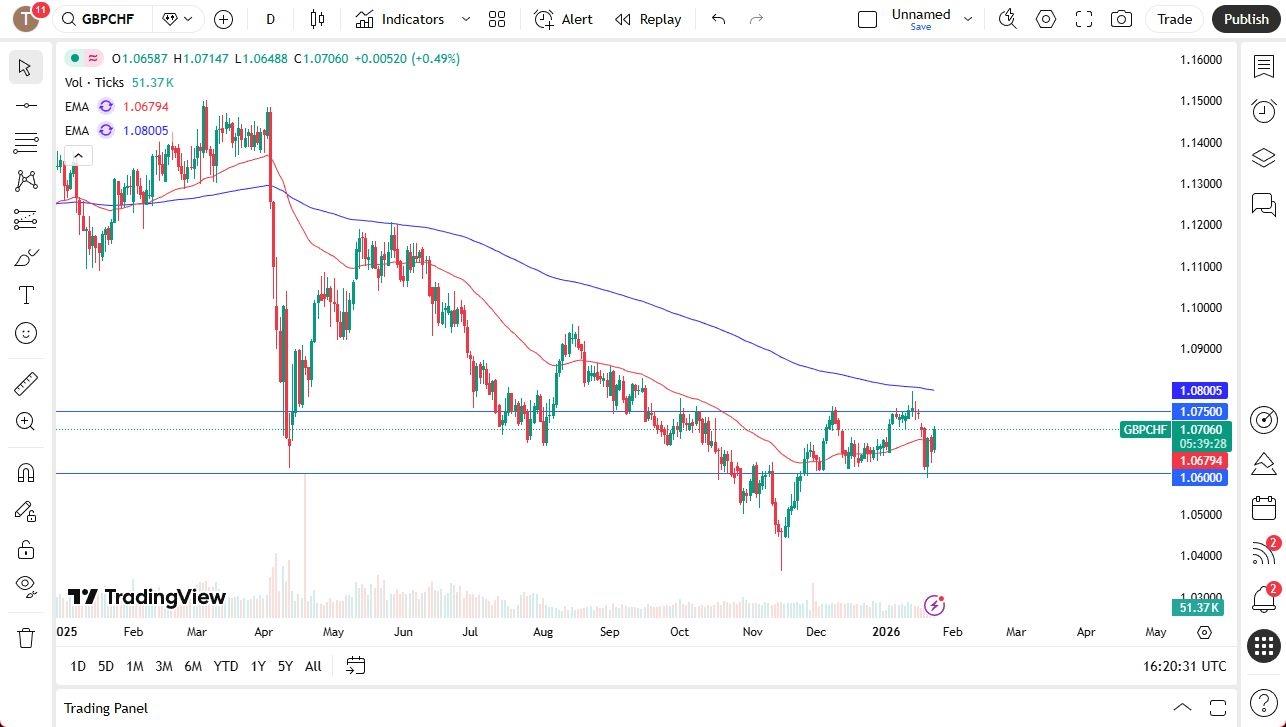 This is Christopher Lewis from Daily Forex, looking at the British Pound against the Swiss Franc. The British pound has rallied quite nicely against the Swiss franc during trading as retail sales numbers out of the UK came out hotter than anticipated as well as projected PMI numbers. So maybe, just maybe, the Bank of England will have to wait on cutting rates.