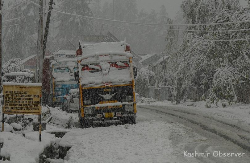 An official said that the Srinagar–Jammu National Highway was closed for traffic after snowfall in and around the Navyug Tunnel.“No vehicular movement is allowed from either Jammu or Srinagar,“ he said, as per news agency KNO.
