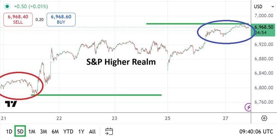 (MENAFN- Daily Forex) The S&P 500 has been doing well over the long-term. Day traders perhaps have not been able to profit easily from upside value in the index the past few months due to choppy conditions, but on a whole the S&P 500 has been rather steady. The results in the S&P 500 have certainly delivered calmer upwards momentum than the Nasdaq 100 over the mid-term. Last week's lower momentum did see the 6,800.00 momentarily challenged, but after nervousness was handled and more positive sentiment emerged, the S&P 500 has found higher ground again.As of this morning's trading and following yesterday's gains, the S&P 500 is near the 6,967.00 level with sustained price action as the index awaits its cash open on Wall Street in a few hours. The S&P 500 is once again within sight of all-time highs and the 7,000.00 level certainly remains a target and a talking point for investors. Yesterday's ability to hit the 5,000.00 mark in gold was achieved and sustained with higher values. Day traders need to understand milestones effect the mindsets of investors just like everyone else Sentiment is PositiveThere has been plenty of noise in the broad markets the past few weeks and it may not disappear, in fact speculators need to understand that new noise will certainly emerge. But for the moment importantly, the sentiment for U.S indices has once again become a game of risk on. Day traders need to understand that even the high and mighty S&P 500 is moved by something as simple as sentiment.Positive momentum and perhaps the simple thought that financial markets have survived what was framed as bad news globally, has likely helped fuel the buying power now being seen on Wall Street. The S&P 500 has not only sustained its higher ground rather easily after nervous trading, but yesterday's lower price action produced a strong reversal upwards that seems to have gathered more power early today Higher Looks IntriguingMomentum and optimism are now suddenly being ignited in the marketplace. Perhaps the optimism will be short-lived, but day traders need to consider that while the S&P 500 certainly has the capacity to always move lower, it frequently doesn't.