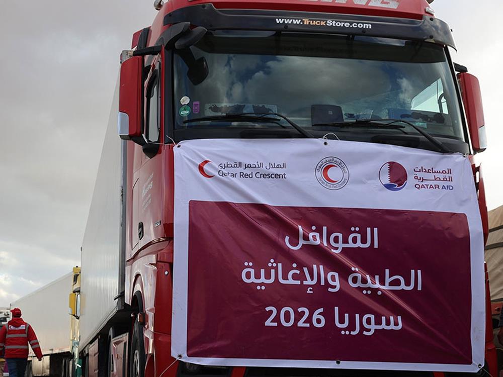 Damascus: The Qatar Red Crescent Society (QRCS) has dispatched a new overland relief convoy to Syria, in cooperation with the Embassy of the State of Qatar in Damascus and the Syrian Arab Red Crescent, which will receive the aid shipment and distribute it to the most in-need beneficiaries according to the established operational plan.