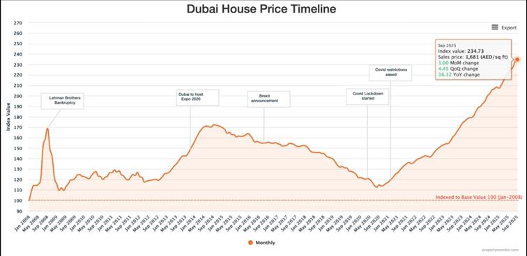 Current Market IndicatorsUntil mid-2025, the market saw rapid price appreciation and rental growth, with Dubai becoming one of the world's most expensive rental markets. However, even during this growth, rating agencies began flagging the risk of a price correction due to the impending wave of new inventory.