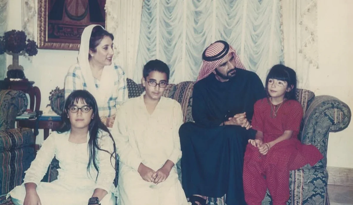 In a throwback to the past, Sheikh Mohammed can be seen intently paying attention to Aseefa Bhutto Zardari, First Lady of Pakistan, and her siblings, when they were children, as he sat across from Benazir Bhutto.