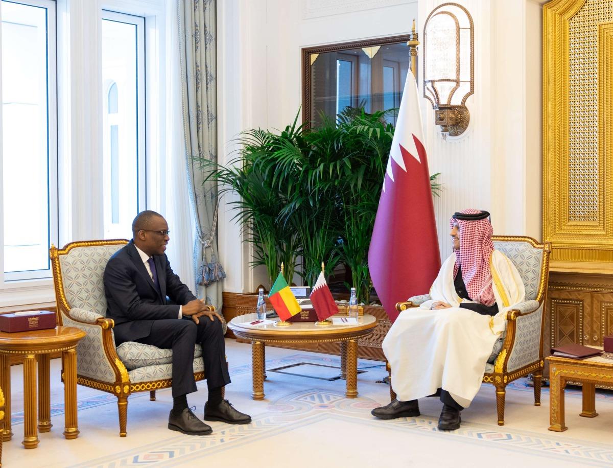 Doha, Qatar: Prime Minister and Minister of Foreign Affairs HE Sheikh Mohammed bin Abdulrahman bin Jassim Al-Thani met on Monday with Minister of Foreign Affairs of the Republic of Benin HE Olushegun Adjadi Bakari, who is visiting the country.