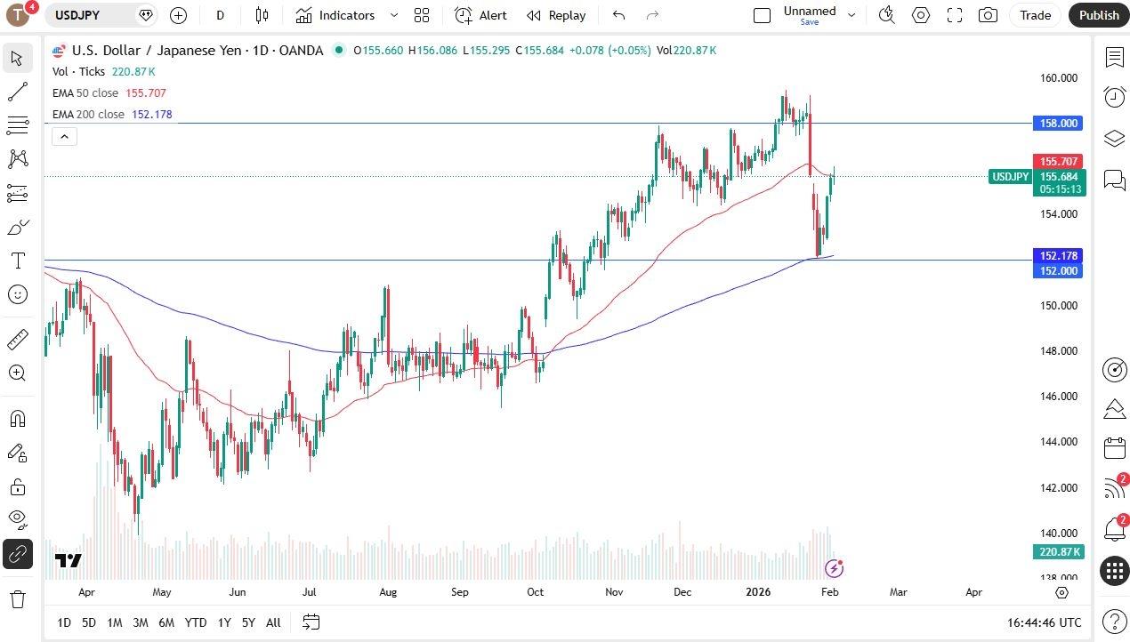 (MENAFN- Daily Forex) I look at this market as one that could offer opportunities on dips, but it will also be very noisy and rocky to say the least/JPYThe US dollar has gone back and forth against the Japanese yen during trading here on Tuesday and it does suggest that perhaps we do not really know what to do next as we are hanging around the 50-day EMA which in and of itself will cause a certain amount of chaos.But I think you also have to realize that this pair is struggling due to the fact that the US dollar itself is a little soft during the trading session. However, I look at this as a buy on the dip opportunity and you do get paid to hang on to the US dollar against the Japanese yen.Furthermore, this is a great measuring stick as to how the Japanese yen may or may not behave. And I think at this point it is obvious that the Japanese yen is in significant trouble and with that being the case I do prefer to hold the dollar as it pays you at the end of every day Policy and Technical SupportBut we are also a little stretched from a longer-term perspective. Maybe a little bit of choppiness here is on tap. I suspect you probably have an easier time with something like the British pound against the Japanese yen but I also recognize that they all tend to move in the same direction over the longer term.The Bank of Japan finds itself in a situation where it has a lot of problems tightening monetary policy despite the fact that yet again people fell for that line. Now we have a situation where I think the 200-day EMA becomes increasingly important.As long as we can stay above there, I am looking to buy dips, maybe collect profit on the way up and then buy the next dip. I do think the US dollar does eventually reach the 158-yen level again.Want to trade our USD/JPY forex analysis and predictions? Here's a list of forex brokers in Japan to check out.