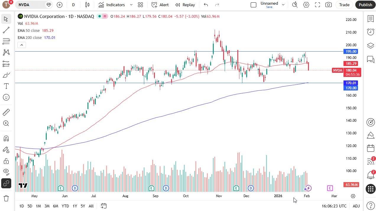 (MENAFN- Daily Forex) The NVIDIA market has struggled a bit recently, as traders are starting to question a lot of arrangements in the AI spaceThe NVIDIA market has been a bit hesitant to say the least during the trading session on Tuesday so far but when you look at the longer-term outlook it's been sideways and with that being the case I think range bound trading continues to be the way forward.We're not quite oversold according to the stochastic oscillator so I find it very interesting if we drop to the $170 area because that's where the 200-day EMA is. If we get the stochastic crossing over in an oversold condition, I'd be very interested in that.NVIDIA is struggling at the hands of math. We are starting to see reports that NVIDIA is pumping money into OpenAI so that they can rent big huge data centers and try to put together the idea of renting these massive data centers that then the money goes to Oracle but sometimes Oracle gives the money to OpenAI and such and we're seeing this convoluted swirl of money changing hands in the artificial intelligence sector but the reality is everybody's losing money CONVOLUTED SWIRL OF THE AI SECTORNVIDIA has a perfectly viable business outside of artificial intelligence, but it is part of what we've seen in the explosion over the last couple of years. It wasn't that long ago that NVIDIA was trading at $25 a share.Because of this I think someday a lot of these stocks will collapse. I also think they become generational buying opportunities because artificial intelligence will be a thing but we're going through the growing pains and right now people are starting to look at this sector a little bit more cautiously.In the meantime I have to assume that the market is going to continue to do what the market's been doing and as a result I am looking to buy the dip but we need to see the $170 level hold as support maybe the stochastic oscillator to bounce and perhaps a little bit of a bounce with price as well sets up a nice trading opportunity to the upside.Top Regulated Brokers1 Get Started 74% of retail CFD accounts lose money Ready to trade our stock market forecast and analysis? Here are the best CFD stocks brokers to choose from.