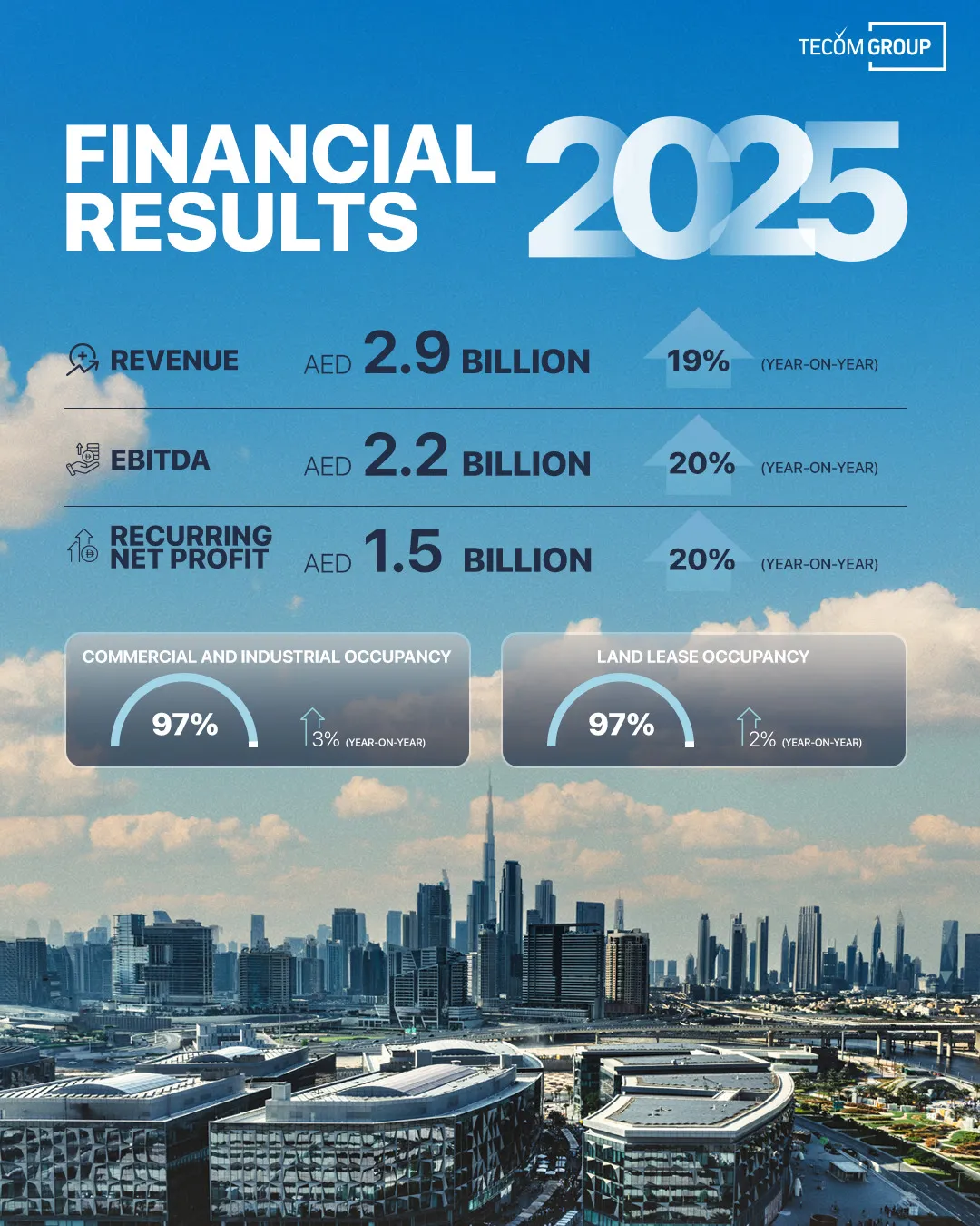 TECOM Group's recurring net profit totalled AED 1.5 billion for FY 2025, representing YoY growth of 20% supported by effective cost control and optimised financing, underscoring the Group's successful strategy to achieve long-term shareholder value.