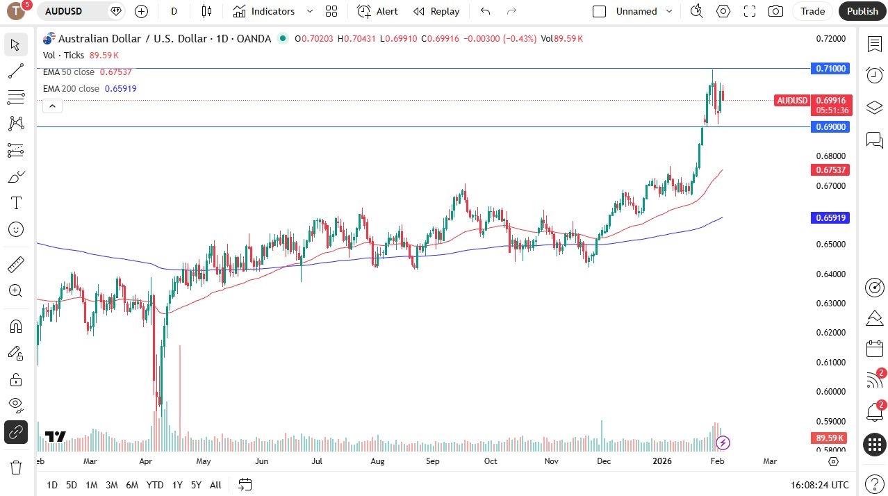 (MENAFN- Daily Forex) The Aussie continues to see a lot of noise, but at this point, we have a lot of questions about the market overall/USDThe Australian dollar has seen a bit of weakness and as a result it looks like we are going to stay within the same consolidation area that we have been in for a while with the 0.69 level on the bottom and the 0.71 level at the top.The market continues to be very noisy but I think overall this is a currency pair that is a little bit different than many of the other ones as although the US dollar is considered to be weak and the Federal Reserve likely to cut rates the Australian dollar is backed up by the Reserve Bank of Australia who is likely to raise rates later.Furthermore, the Chinese economy is showing signs of strength in manufacturing but at the same time so is the US economy so perhaps this ends up being a global scenario where manufacturing picks up in a couple of the bigger economies such as the United States and China Floors and Upside TargetsThe market breaking below the 0.69 level could be a significant floor and if we were to break down below there then it could open up the possibility of a move down to the 50-day EMA which is near the 0.6750 level.EURUSD Chart by TradingViewIf we break above the 0.71 level, then it's likely that traders will continue to push the Aussie dollar towards the 0.72 level possibly even higher than that.Top Regulated Brokers1 Get Started 74% of retail CFD accounts lose money I would expect some choppy behavior but truthfully if I wanted to buy the US dollar right now, I think you have a situation where although it might work in the case of the Aussie dollar there will be easier currencies to play against the US dollar going forward.Ready to trade our AUD/USD Forex forecast? Here's a list of some of the best Australian forex brokers to check out.