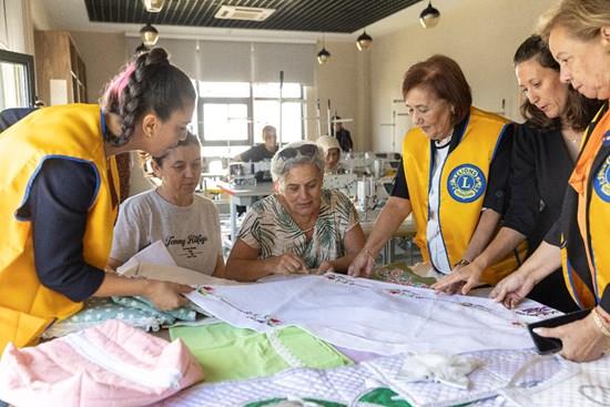 Lions gather with Turkish women in a community center in Mersin for a sewing class.