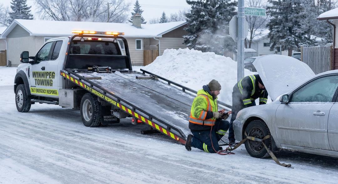"Winnipeg Towing flatbed tow truck responding to a winter roadside emergency on a snow-covered Winnipeg street at night. The company provides 24-hour towing, battery boost, car unlocking, and heavy-duty recovery services across all Winnipeg neighbourhoods, including St. Vital, River Heights, Fort Garry, and Garden City. With transparent upfront pricing and insurance-approved accident towing, Winnipeg Towing keeps Manitoba drivers moving safely through extreme winter conditions."After a December blizzard triggered over 2,700 roadside calls in a single weekend, Winnipeg Towing is reinforcing its 24/7 rapid-response fleet to meet surging winter demand across Manitoba. With extreme cold warnings and tow risks from parking bans on the rise, the company provides specialized flatbed towing, battery boost, car unlocking, and heavy-duty recovery across all Winnipeg neighbourhoods. Transparent upfront pricing and insurance-approved accident towing come standard on every call.