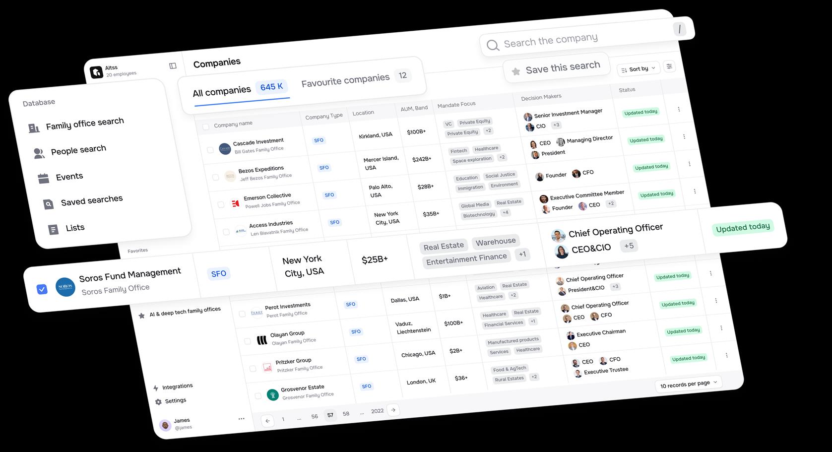 Altss is an allocator intelligence platform for private markets. Founded in May 2025 by a team with deep experience in global cybersecurity operations and large-scale open-source intelligence, Altss applies intelligence-grade methodology to LP discovery - delivering verified decision-maker data, real-time mandate signals, and source-linked profiles refreshed on a sub-30-day cadence. The platform covers 30,000+ institutional investors and family offices worldwide, with the deepest verified family office dataset in the market at 9,000+ profiles. Headquartered in Miami, Altss serves clients globally.