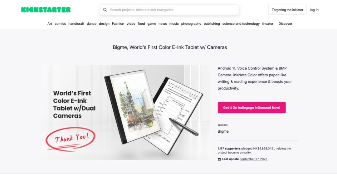 In 2023, the launch of the world's first Kaleido3 color e-ink tablet-the inkNote Color-catapulted Bigme to fame in international markets! It raised $800,000 on Kickstarter and Indiegogo, marking its entry into countless households and helping many more people with dry eye issues.