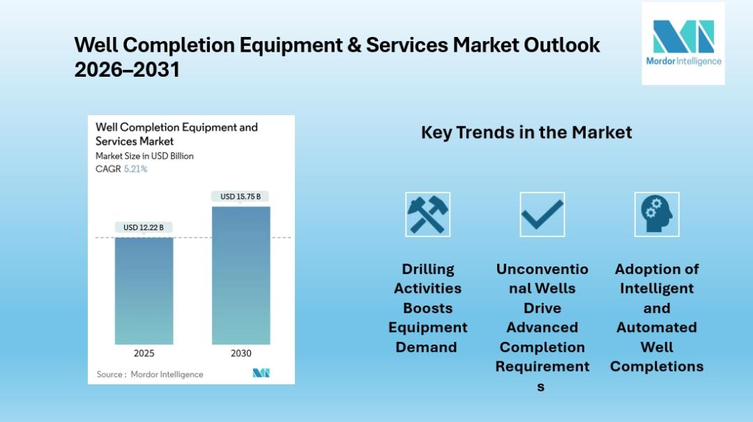 "Well Completion Equipment and Services Market"Mordor Intelligence has published a new report on the Well Completion Equipment and Services Market, offering a comprehensive analysis of trends, growth drivers, and future projections