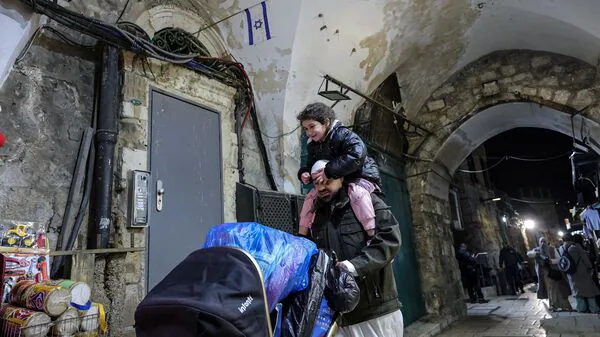 It shows a man carrying a little girl, assumably his daughter, on his shoulders and leaving the Al-Aqsa compound, also known to the Jews as the temple Mount. According to the Reuters, the man is leaving the mosque after Taraweeh prayers.