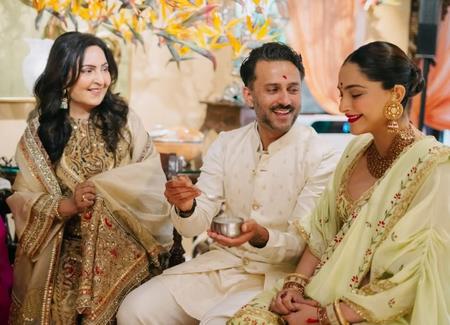 Sonam took to Instagram, where she shared a string of pictures of her mother-in-law posing with her grandson Vayu and son Anand Ahuja along with the actress.