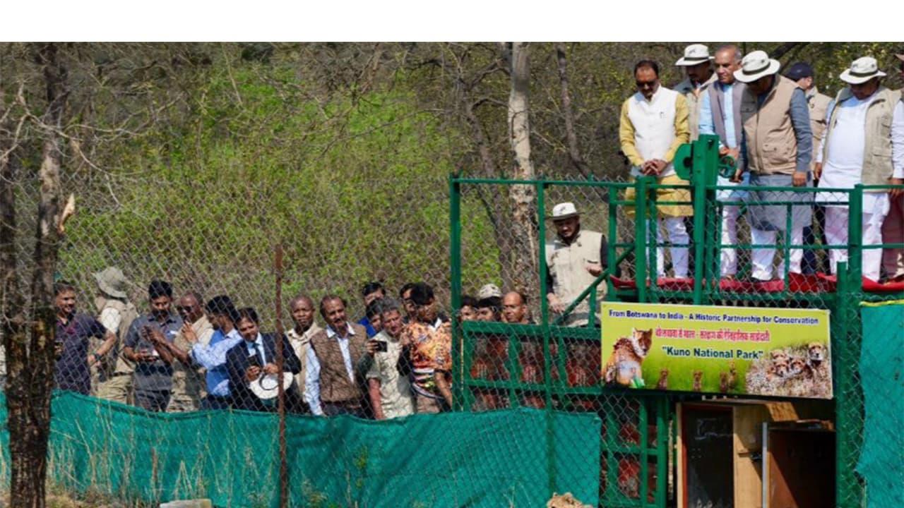Union for Environment, Forest and Climate Change Bhupender Yadav released nine cheetahs received from Botswana into quarantine enclosures at Kuno National Park in Madhya Pradesh. The animals will undergo an acclimatisation and health monitoring phase before their gradual release into the larger landscape.