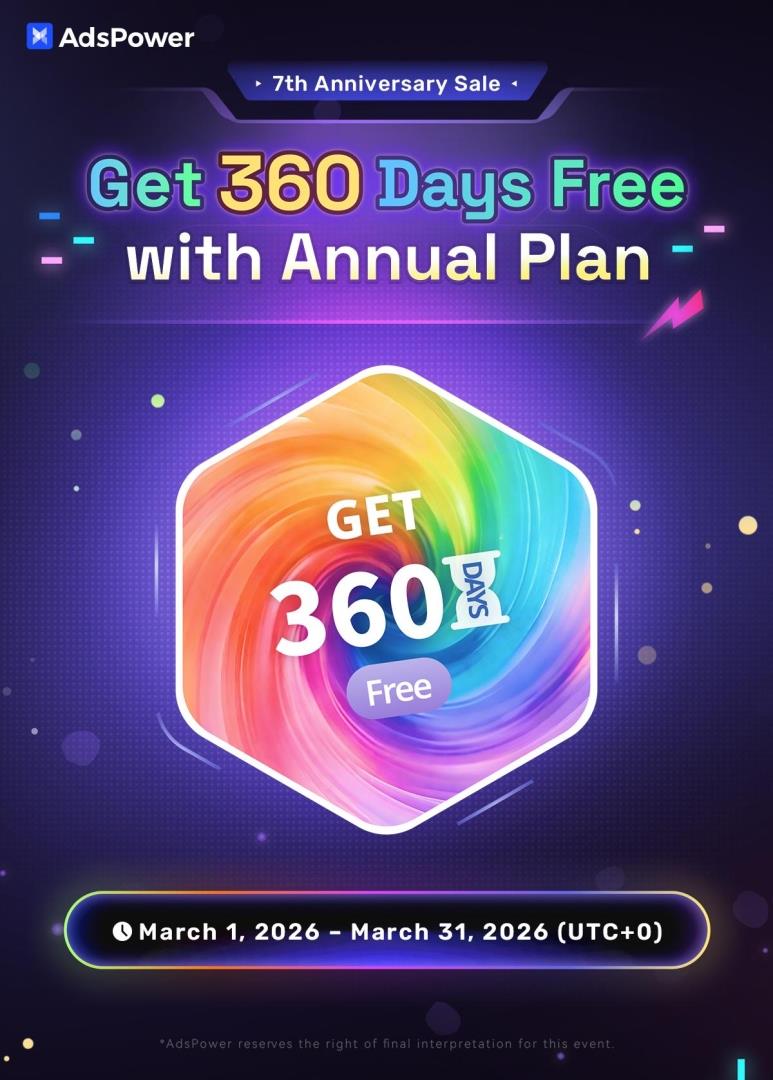 AdsPower 7th Anniversary Sale: Buy 360 Days, Get 720 Days in Total