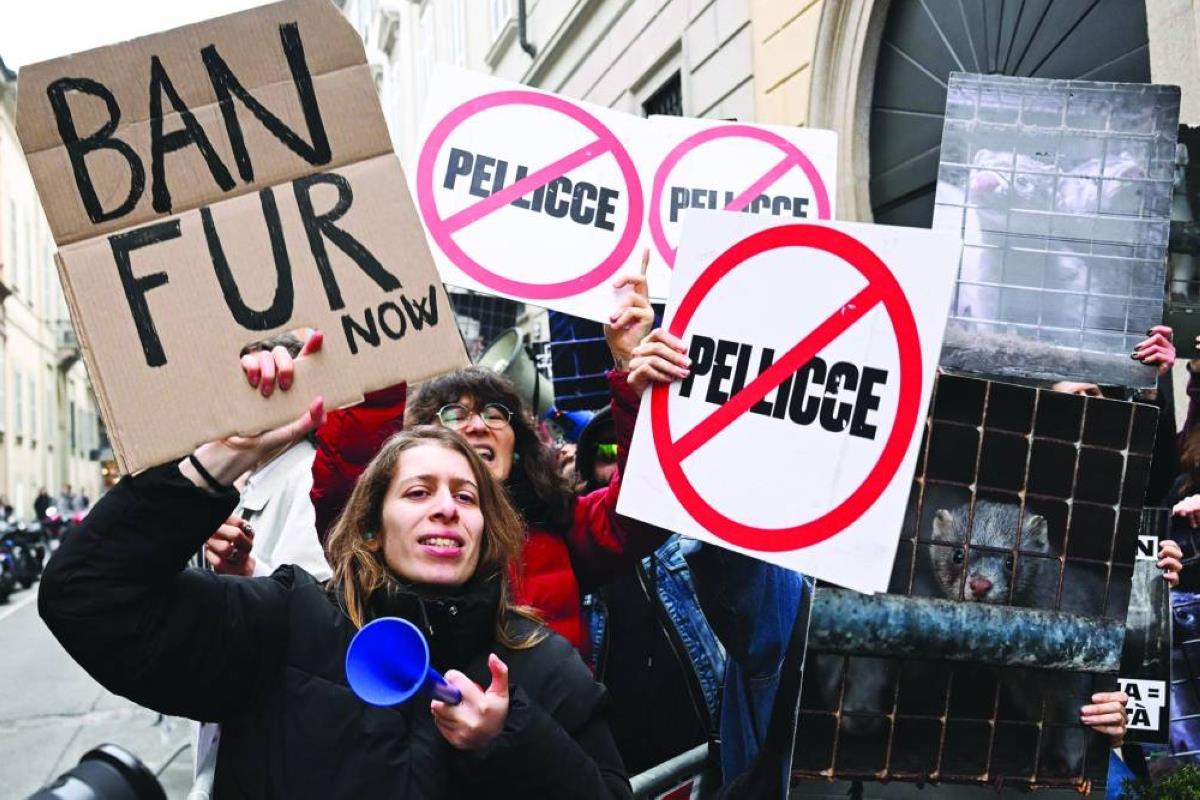 Animal activists Milan Fashion Week fur free policy protesters