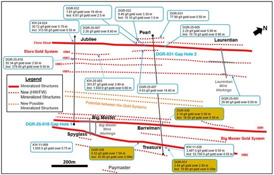 Dryden Gold Intersects 15 Gold Mineralized Structures In Single Hole At Gold Rock