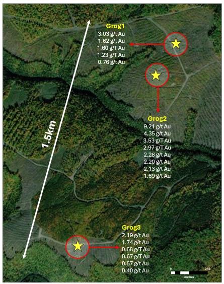 Figure 2. Gold showings at Grog
