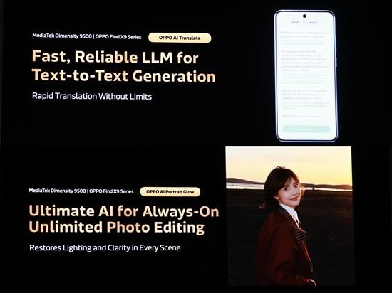 Powered by the MediaTek Dimensity 9500 platform, OPPO's self-developed on-device AI Translate and AI Portrait Glow now deliver performance comparable to cloud-based solutions. These features will soon roll out to OPPO Find X9 Series through the upcoming ColorOS 16 software update.