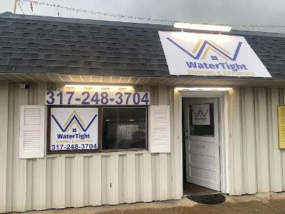 "This storefront image features the professional headquarters of WaterTight Roofing & Exteriors. The facility displays clear, high-visibility branding and the company's contact number prominently on both the main signage and window displays. The well-maintained exterior, featuring a classic shingle roof and inviting entryway, reflects the company's dedication to providing reliable, high-quality roofing and exterior solutions to the local community."WaterTight Roofing Indy introduces a patent-pending seal method for roof replacement in Indianapolis, backed by 80+ years of experience and a lifetime transferable warranty at no extra cost.