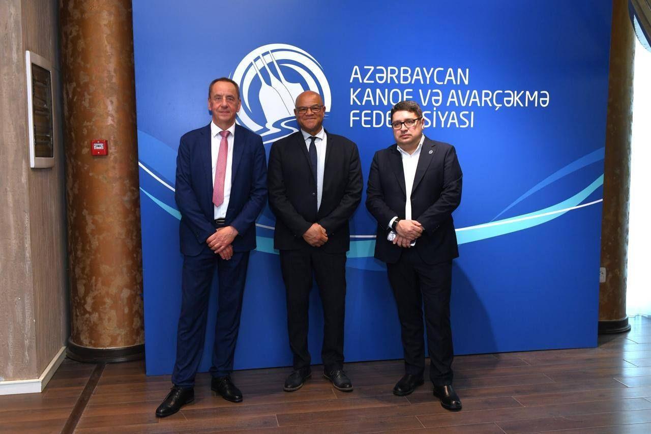 The leaders of the international canoeing organizations met with officials at the Azerbaijan Canoe and Rowing Federation. They were briefed on the working conditions at the federation's administrative headquarters.