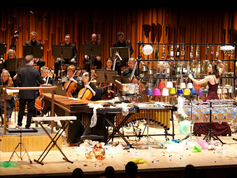 The orchestra, soloist and conductor brought the performance to a peaceful close, quoting again The Unanswered Question, ankle deep in plastic bags, discarded lids and other rubbish. It was a visually and aurally striking end to a moving plea to take more care of our environment.