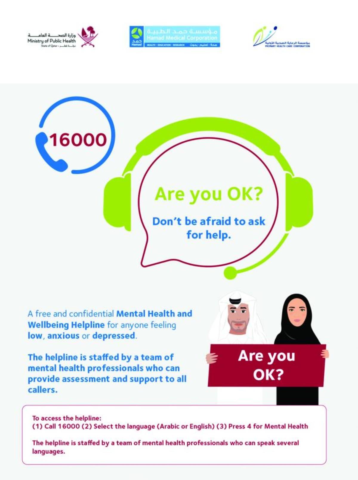 MoPH has advised that anyone who needs mental health support should contact the mental health support services by calling 16000.