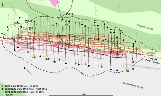The Company completed 39,000m of diamond drilling in 2025. An updated MRE is planned for Q1 2026 to be followed by an updated Preliminary Economic Assessment ("PEA") in Q2, that will include the Wenot open pit deposit and the adjacent Gilt underground deposit. Three drills have commenced the 2026 drill program: at Wenot the focus is to further test the limits of the deposit, including both east and west, and to commence upgrading the large Inferred MRE to Indicated. Additional drilling will continue to explore certain known gold occurrences for possible near-surface higher-grade satellite deposits. The Omai Gold Mine produced over 3.7 million ounces of gold from 1993 to 20052, ceasing operations when gold was below US$400 per ounce. The Omai brownfields project benefits from known metallurgical recoveries, existing tailings facilities, and infrastructure, including an on-site airstrip, and road access, connecting to the two largest cities in Guyana, Georgetown and Linden.