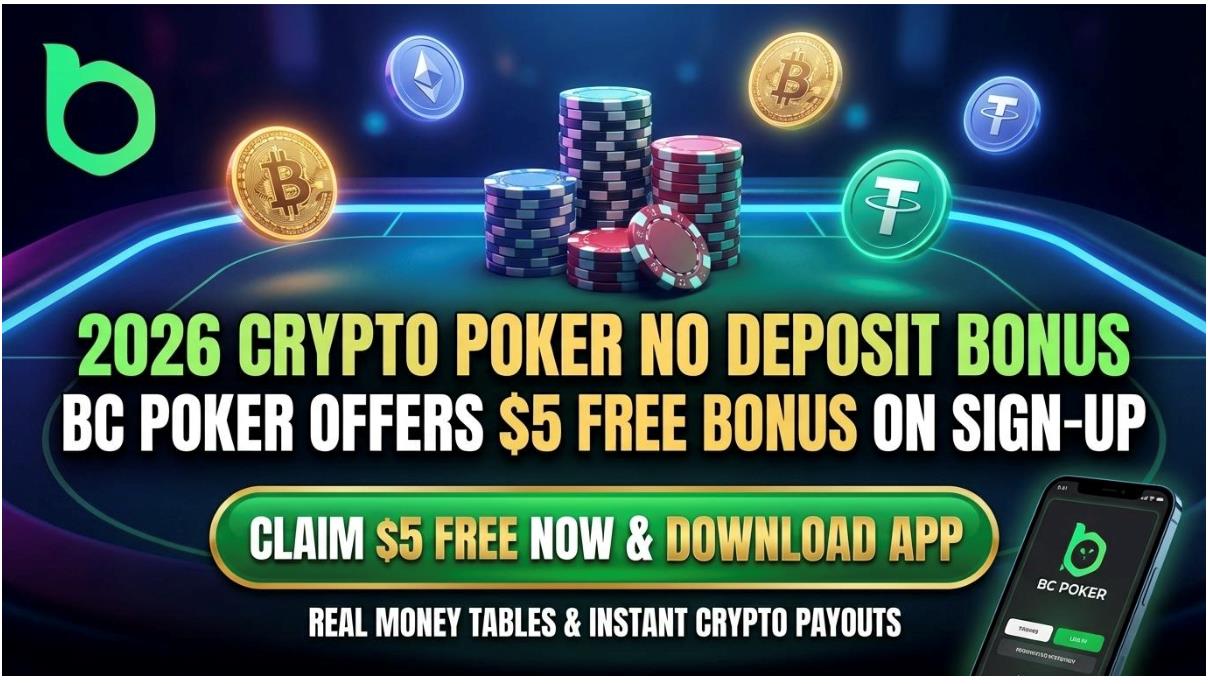 Crypto Poker No Deposit Bonus 2026: BC Poker Offers $5 Free Bonus On Sign-Up With App Download, Real Money Tables & Instant Crypto Payouts
