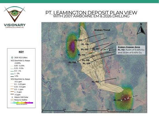 The Phase 1 campaign is the first systematic exploration drilling at the Pt. Leamington deposit in over two decades. The campaign was designed to test resource expansion opportunities along strike and within the known deposit footprint as well as to better define the stratigraphic setting and mineralization controls. The discovery of the Kraken copper zone validates the Company's geological interpretation and the significant exploration upside at Pt. Leamington.