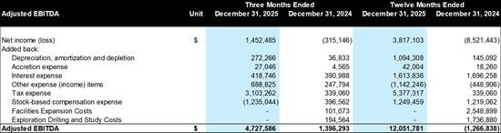 Dynaresource Reports Year End 2025 Results At The San Jose De Gracia Mine, Net Income For 2025 Of $3.8M, And Adjusted EBITDA For 2025 Of $12.1M