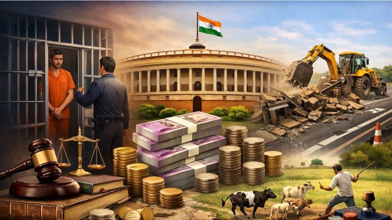 Similarly, under the National Highways Act, actions that make highways unsafe, which earlier could lead to up to five years in prison, will now result in fines between ₹10 lakh and ₹1 crore.