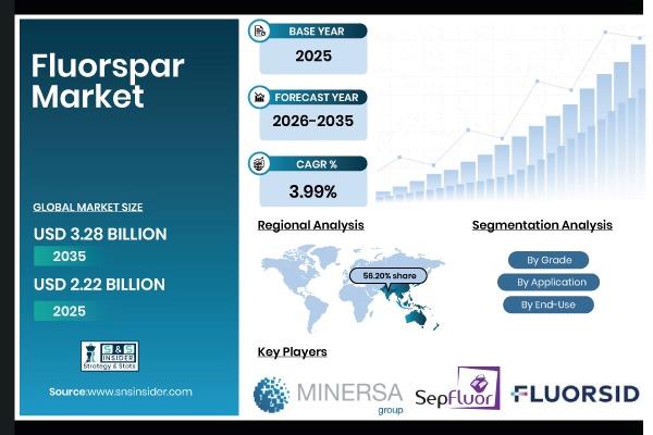 Fluorspar Market Size To Surpass USD 3.28 Billion By 2035, Driven By Demand From Fluorochemicals And EV Batteries SNS Insider