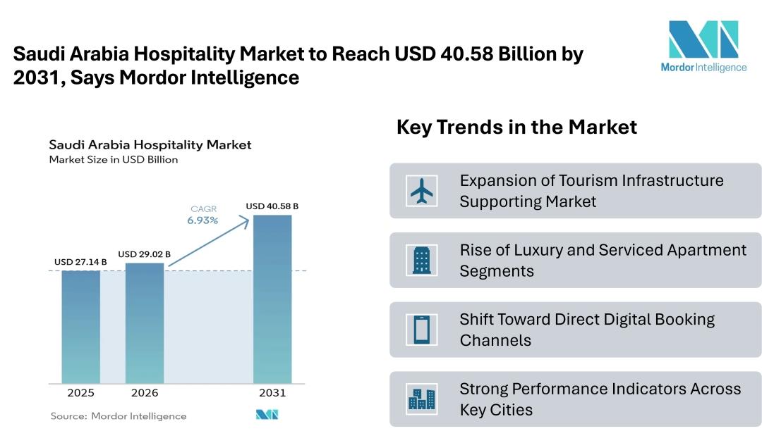 Saudi Arabia Hospitality Market To Reach USD 40.58 Billion By 2031, Says Mordor Intelligence
