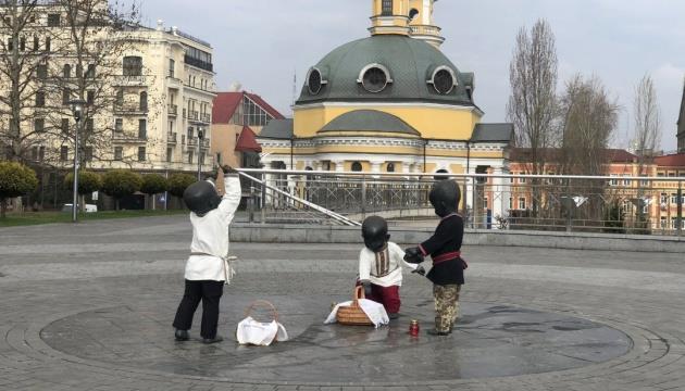 Sculptures Of Kyiv's Founders Dressed Up For Easter